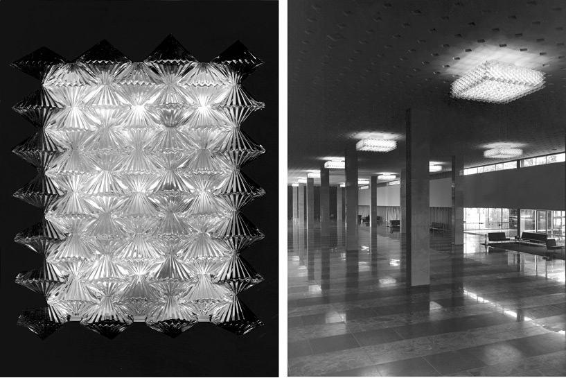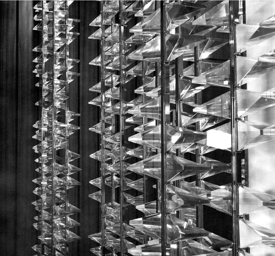 Chandeliers of pressed glass disks, 1978
