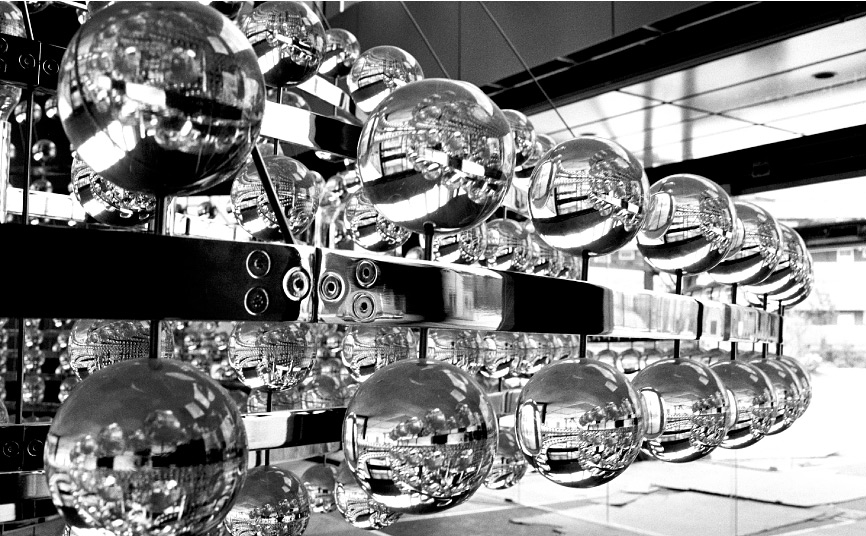 Light fixtures, chromed steel, full glass balls, Ø 4,6 m