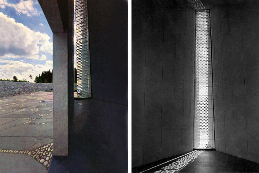 “When I first visited the structure, I was struck by the architect’s strong desire to preserve for the living the memory of the dead and of the resurrection. The architectural means clearly expressed this idea: The horizontal wall of names running into the structure, covered with rust, stood for the past juxtaposed with the very high vertical opening for light that stood for the resurrection, salvation.