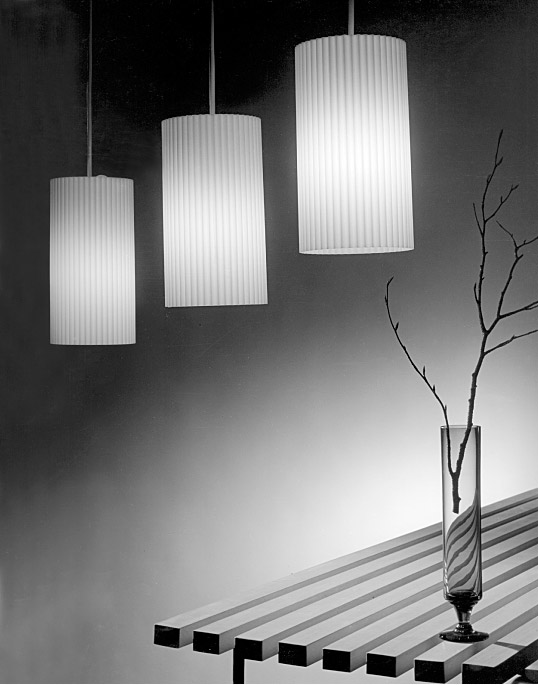 Shortly after the war, Arnold Reininghaus rebuilt the enterprise and resumed production, now mainly of suspension kitchen lamps. In 1948 the products were presented at the fair trade in Hannover. Despite a demand for economically priced lighting, the first collection of plastic lighting was unexciting and architects took little notice of it since plastic was considered a replacement material and not regarded very highly. The company was given a new profile through its collaboration with Aloys F. Gangkofner in 1959. The program of florescent and tube lighting was converted into clear, modern forms. New designs for lighting in living and working spaces were developed. Almost all of these products were distinguished with the rating “good industrial form” at the Hannover trade fair.